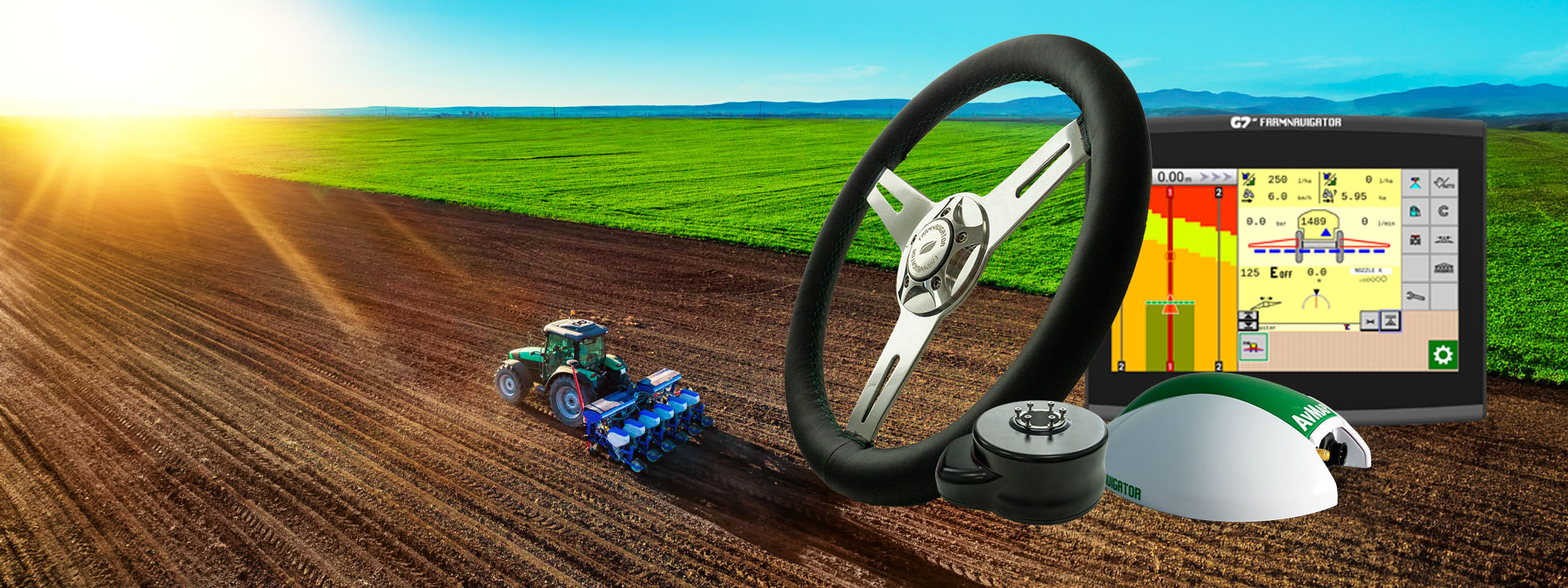 Farmnavigator Pilota include tot ce aveti nevoie pentru al conecta la ecranele G7/G12 si pentru a incepe sa controlati tractorul.
